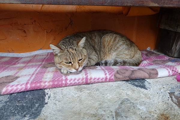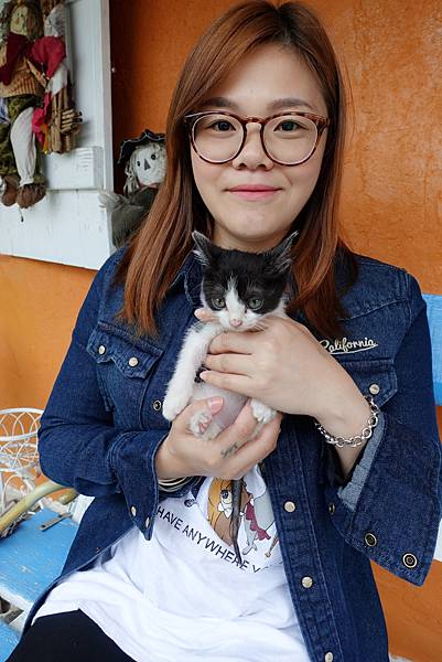 這裡養了好多貓咪,這隻不太愛理人,因為張爸說它已年邁~立馬轉頭進去抱出一隻小小貓![]()